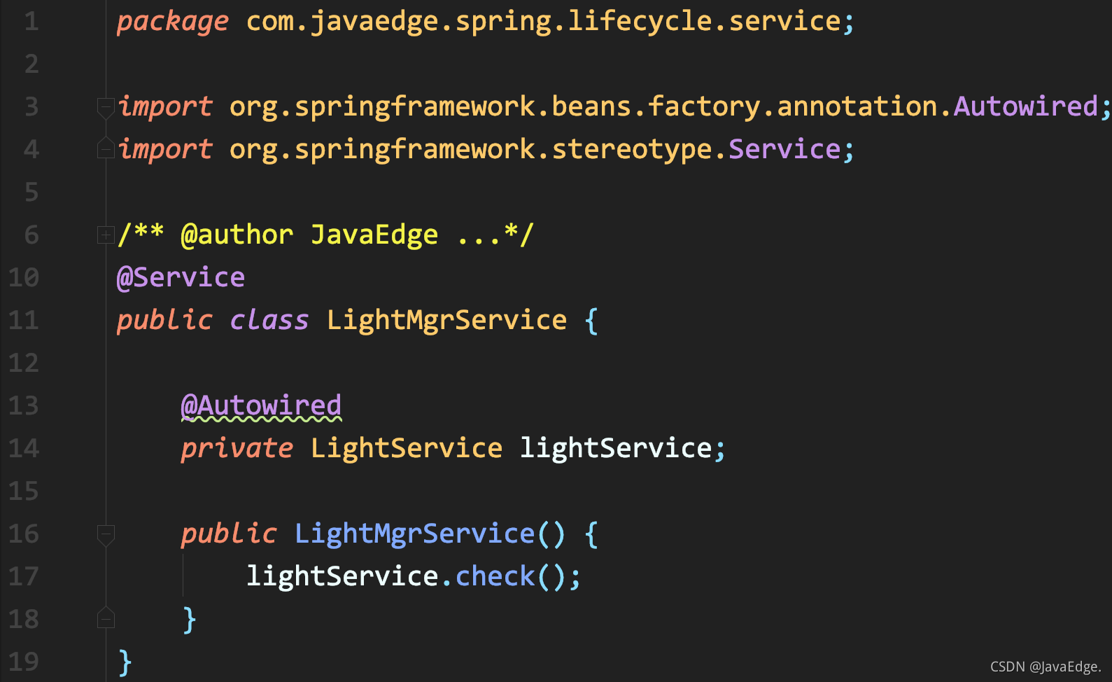 我们在 LightMgrService 的默认构造器中调用了通过 @Autoware 注入的成员变量 LightService#check: