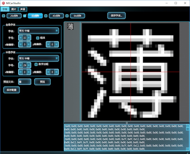 1、自制字体取模软件,取出所需字体的alpha值,作为字库。