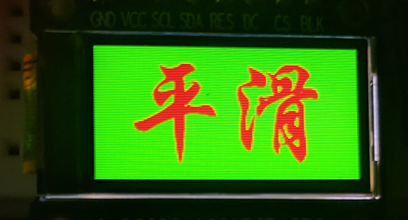 void LCD_ShowZhChar(int x,int y,char *str,uint32_t fc,uint32_t bc){memset(fontCache, 0, sizeof(fontCache)); //fontCache是字库显示缓存,32x32x2大小uint16_t *p = fontCache;for (int i = 0; i < ZH_FONT_WIDTH*ZH_FONT_HEIGHT; i++){*p = LCD_AlphaBlend(fc,bc, gZhFont[i]);p++;}LCD_setAddrWindow(x, y, x+ZH_FONT_WIDTH-1, y+ZH_FONT_HEIGHT-1);//设置显示区域SPI_LCD_CS_LOW();SPI_LCD_DATA_R();LCD_DMA_Send((uint8_t *)fontCache, sizeof(fontCache)); //DMA发送while(is_LCD_DMA_busy);SPI_LCD_CS_HIGH();