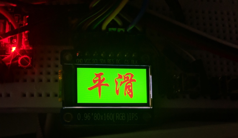 显示效果非常理想(用的是0.96寸80x160分辨率的液晶屏),字体边缘很平滑,没有难看的锯齿: