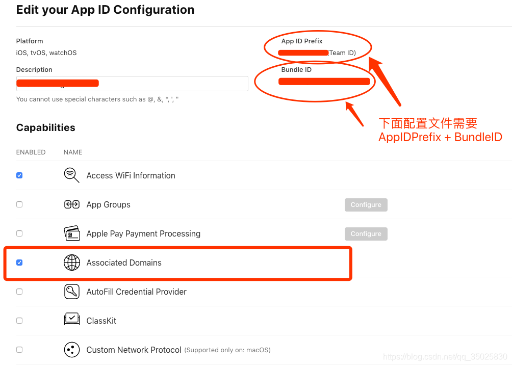 - 登陆https://developer.apple.com/,Identifiers开启Associated Domains