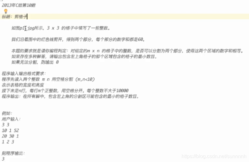 本文主要是介绍2013省赛---剪格子(递归深度搜索,),希望对大家解决编程问题提供一定的参考价值,需要的开发者们随着小编来一起学习吧!