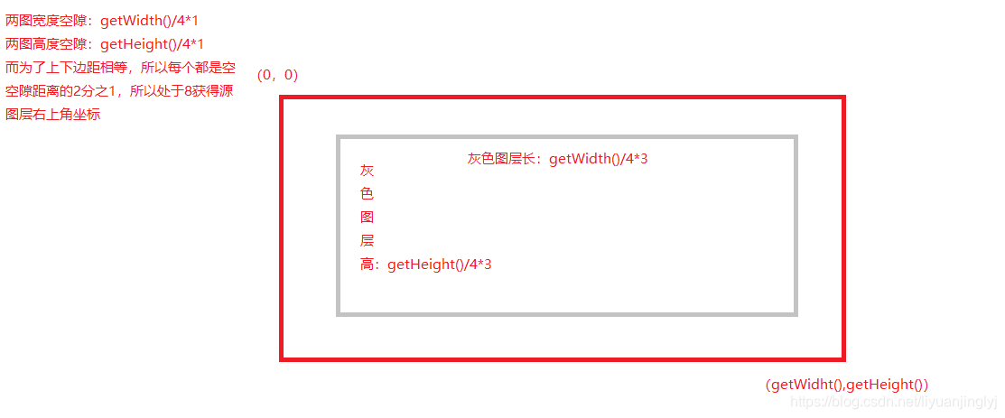 可能有的小伙伴注意到了,这里小编源图层右上角的坐标为(getWidth()/8,getHeight()/8),这是因为我们使用中,大多数刮刮乐背景边缘并不是灰色,灰色图层在中间显示,所以这里小编将源图层移动到了整个画布的相对中间点的位置,这个可以随意调节,使得看起来更加美观。