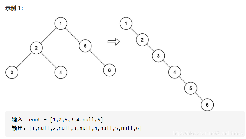 class Solution {public void flatten(TreeNode root) {while(root != null){// 判断左子树是否为空,现在就找左子树if(root.left == null){root = root.right;}else {TreeNode pre = root.left;// 寻找左子树的最右边的结点while(pre.right != null){pre = pre.right;} // 将整个右子树,放到左子树的最右边的结点pre.right = root.right;// 将左子树移动到右子树上去root.right = root.left;// 将左子树设置成nullroot.left = null;// 继续往右子树上走,看看有没有左子树root = root.right;}}}