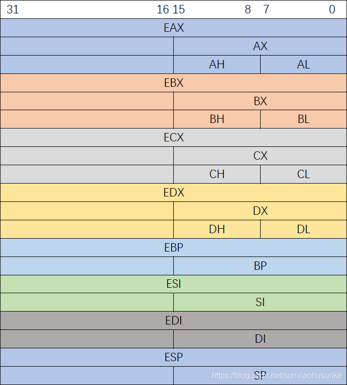 Intel Architecture 32位处理器,主要以80386为参考。包括以下几类寄存器: