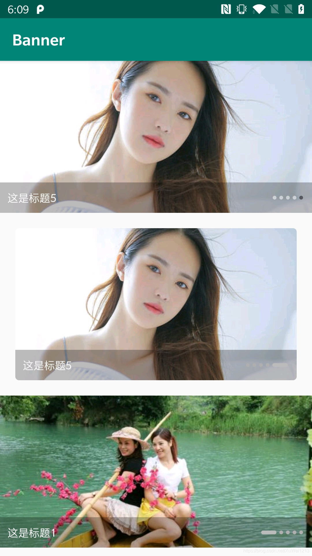 因为我还需要实现圆角图片,所以我在imageLoader中返回了圆角的imageView,并且复制出banner.xml 的内容,给标题栏的背景添加底部圆角的背景。