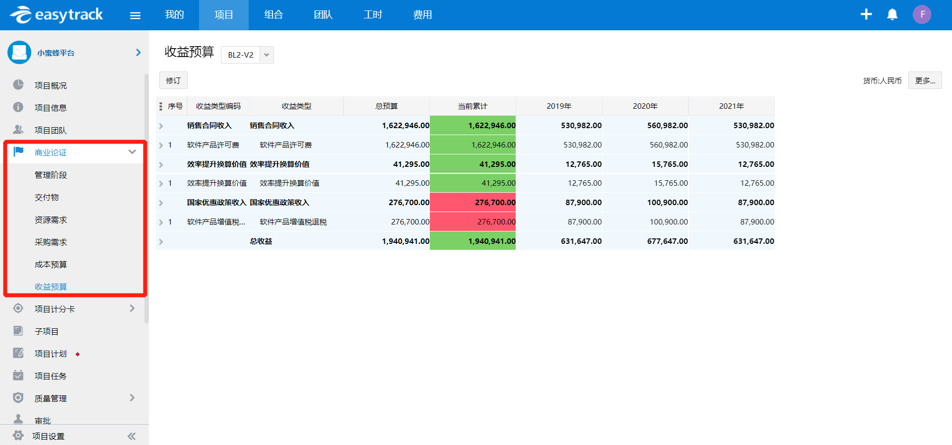 图3 易趋项目计划视图
