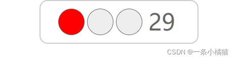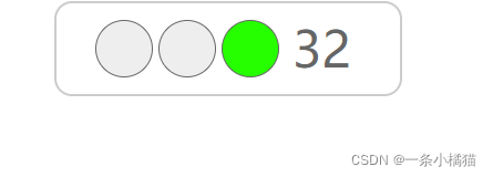 <style>.box{width:250px;height:52px;padding:15px 30px;border:2px solid #ccc;border-radius:16px;margin:0 auto;}.box .count{width:60px;color:#666;font-size:280%;line-height:50px;padding-left:6px;margin-left:5px;border:1px solid #fff}.box div{margin-left:5px;float:left;width:50px;height:50px;border-radius:50px;border:1px solid #666;}.gray{background-color:#eee;}.red{background-color:red;}.yellow{background-color:yellow;}.green{background-color:#26ff00;}