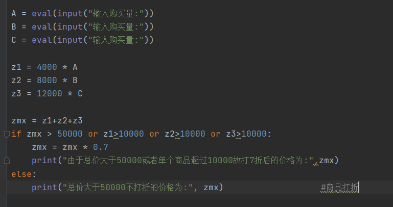 本文主要是介绍py求商品打折简单代码,希望对大家解决编程问题提供一定的参考价值,需要的开发者们随着小编来一起学习吧!