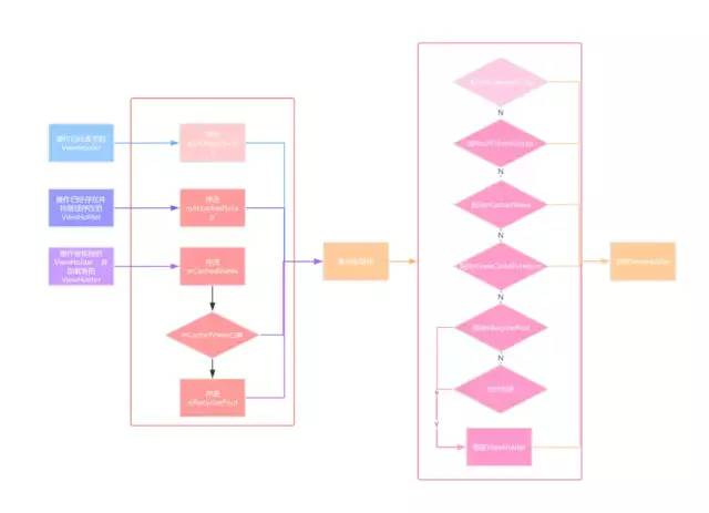 } 最后还是交给了 LayoutManager 处理,除去函数嵌套之后,最后又回到了 LayoutManager 的视图填充的过程,在 2.2章节中,我们仅仅讨论了该过程中视图的获取,其实,该过程中,还会涉及到视图的回收,LayoutManager 在回收的过程中,大概做了如下的事情: