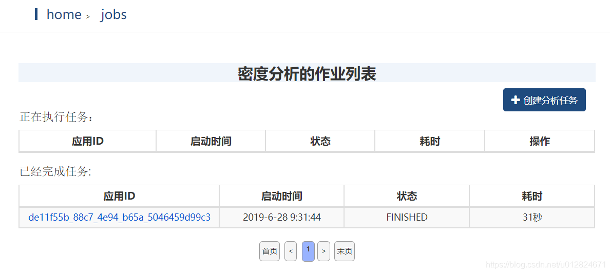 该页面将展示密度分析任务执行情况,点击每一个分析任务链接,可以参考任务详情。