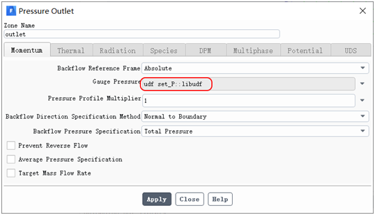 }DEFINE_PROFILE(set_P, tf_out, i) // 记得把该宏hook到出口边界