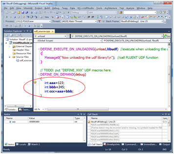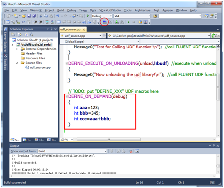 这里介绍一款专业的UDF编译调试插件工具VC++ UDF Studio,可以直接在Visual Studio中一键编译后单步调试UDF源程序并查看中间变量值,无需设置环境变量,十分方便。