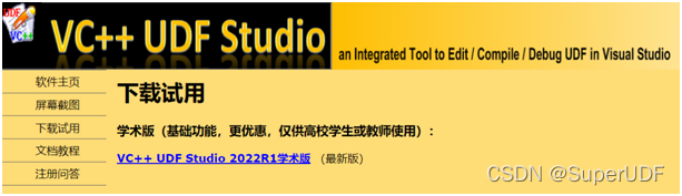 1. 官网下载VC++ UDF Studio插件,建议下载学术版。