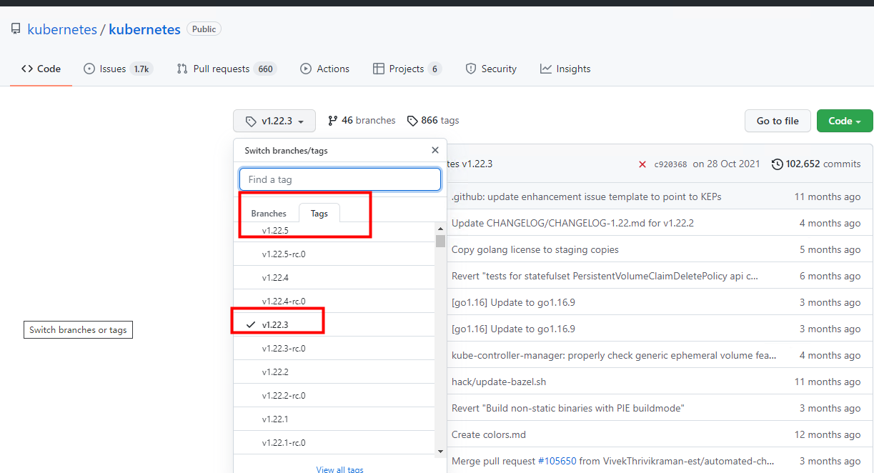 #首先查看一下k8s的版本,源码要下载跟你当前系统对应的版本,所以我这边下载v1.22.3,就可以