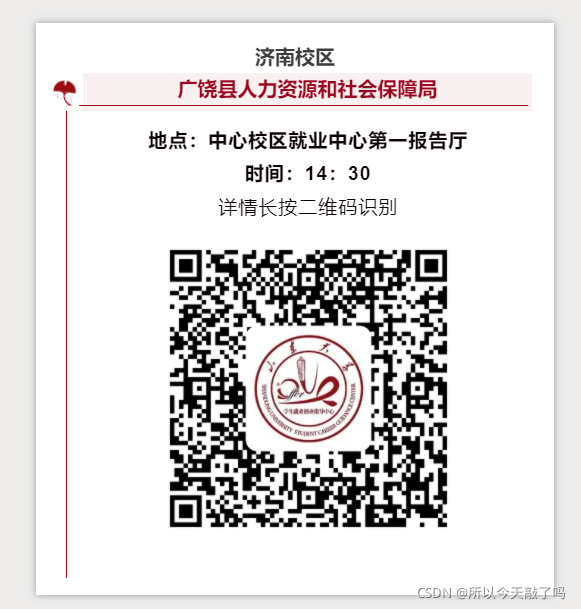 我的勤工助学工作是在就业中心推送招聘信息,其中有个每日必推的文章叫做“明日宣讲”,里面的内容是明天所有来学校做宣讲的单位名称、时间、地点以及链接到就业中心官网的单位招聘信息的二维码。