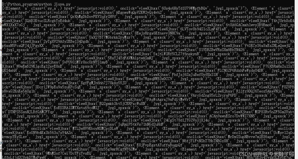 这一次,返回了一个具有很多元素的大列表!每一个元素对应一个单位。初步实现了获取招聘网站内所有单位特征值的功能。继续使用.split()方法即可取出特征值。
