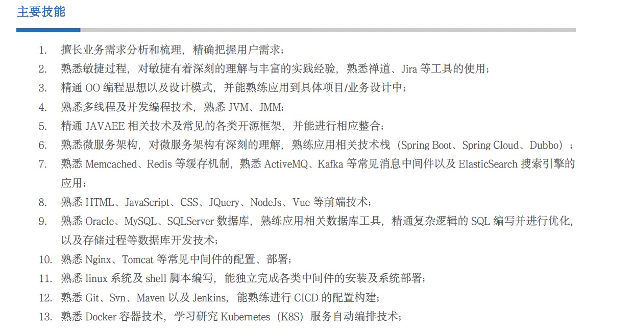 下面是写的还可以的,这里还要注意一点,你如果想申请的岗位是个专家,就别把一堆小工具,很常用的框架写在里面,这会让你掉身价。