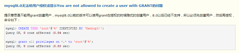 本文主要是介绍GRANT ALL PRIVILEGES ON *.* TO ‘root‘@‘%‘ IDENTIFIED BY ‘root‘ WITH GRANT OPTION;报错,希望对大家解决编程问题提供一定的参考价值,需要的开发者们随着小编来一起学习吧!