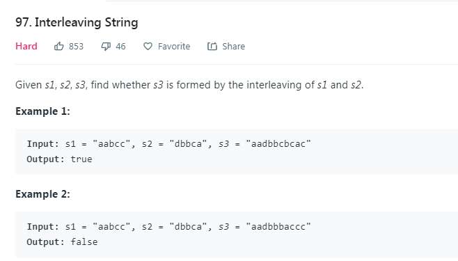 本文主要是介绍LeetCode 97 Interleaving String,希望对大家解决编程问题提供一定的参考价值,需要的开发者们随着小编来一起学习吧!