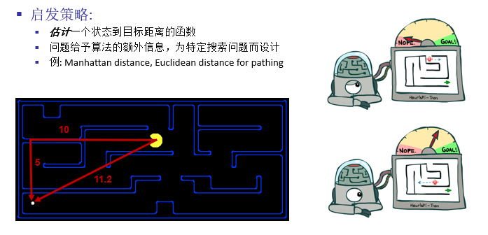 其实我们最大问题并不是理解启发式函数,而是怎么去想出最好的可采纳的启发函数。通常情况下可采纳启发函数都是松弛问题的解的耗散问题。其实不能被采纳的启发函数也不是一无是处,常常也是非常有用的。