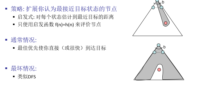 启发式函数(对于大多数最佳优先搜索):h(n)=节点n到目标节点的最小代价路径的代价估计值