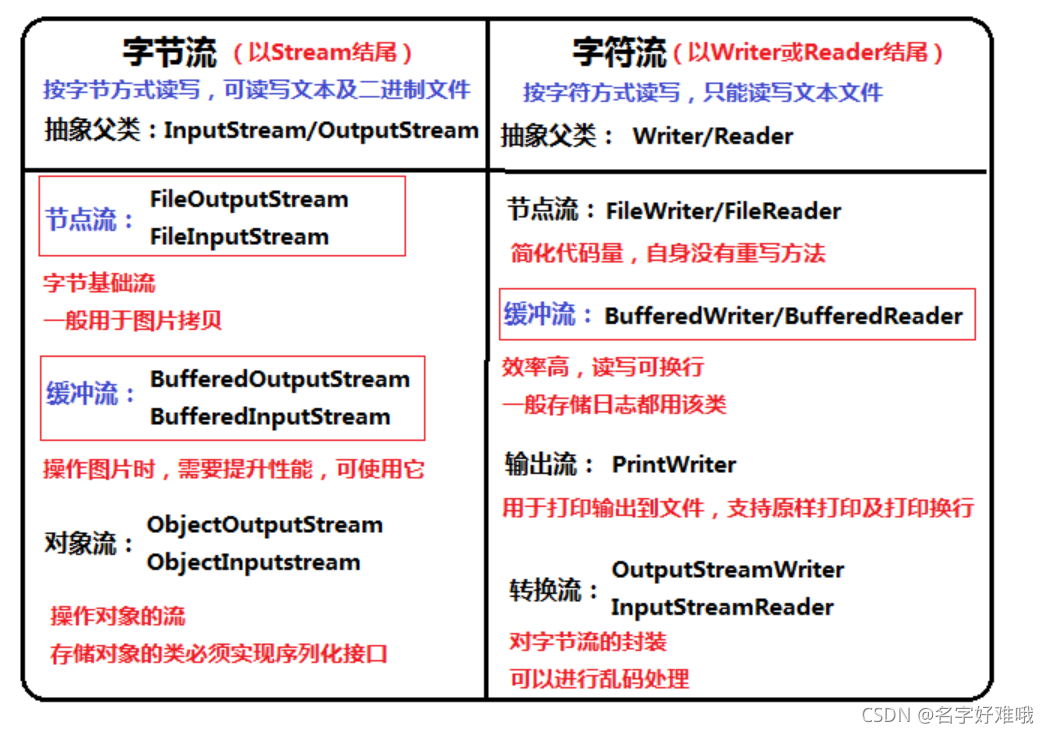 //字符流: 通过一个字符一个字符读写,效率比字节流高,但只能读写文本文件