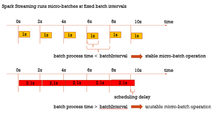 比如,batchInterval是2秒,而blockInterval是200ms,那么task数为10,如果task的数量太少,比一个executor的core数还少的话,那么可以减少blockInterval,blockInterval最好不要小于50ms,太小的话导致task数太多,那么launch task的时间久多了。