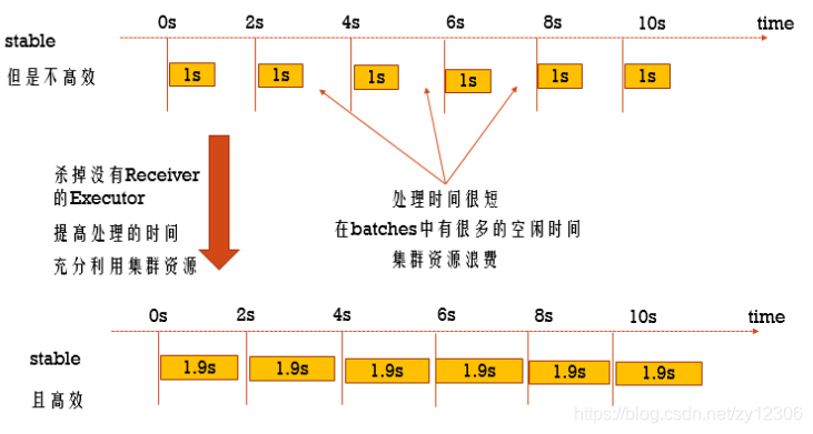Streaming分配Executor的原则是比对 process time / batchInterval 的比率。