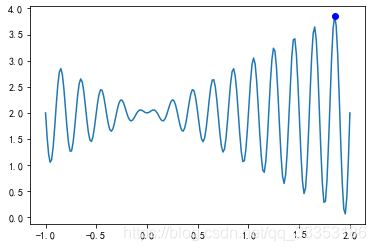 def aim(x): # 传入种群染色体矩阵解码后的基因表现型矩阵return x * np.sin(10 * np.pi * x) + 2.0