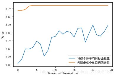 print('目标函数最大值:', obj_trace[best_gen, 1]) # 输出目标函数最大值