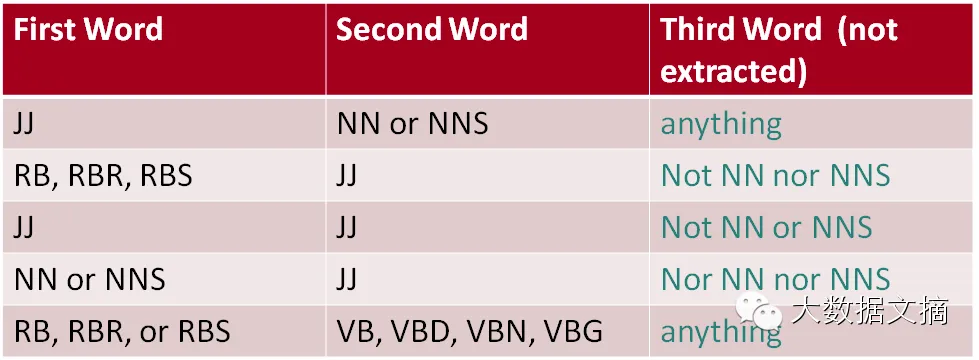 2. Turney Algorithm:论文见Turney (2002): Thumbs Up or Thumbs Down? Semantic Orientation Applied to Unsupervised Classification of Reviews,具体步骤如下: