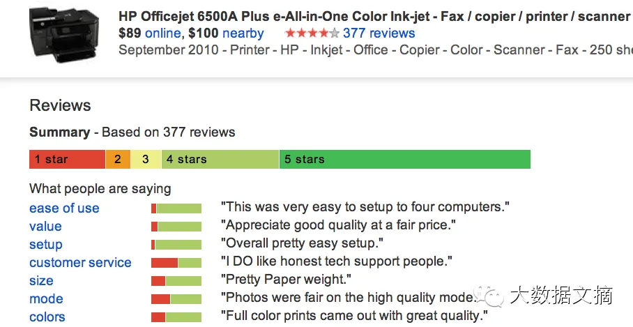 l Google Product Search识别用户对产品各种属性的评价,并从评论中选择代表性评论展示给用户: