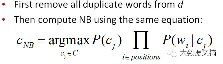 另外,在抽取特征时,直观的感觉“Word occurrence may matter more than word frequency”,这是因为最相关的情感词在一些文本片段中仅仅出现一次,词频模型起得作用有限,甚至是负作用,则使用多重伯努利模型事件空间代替多项式事件空间,实验也的确证明了这一点。所以,论文最终选择二值特征,即词的出现与否,代替传统的频率特征。log(freq(w))也是一种值得尝试的降低频率干扰的方法。