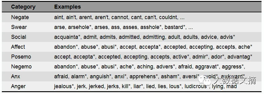详细见论文:Pennebaker, J.W., Booth, R.J., & Francis, M.E. (2007). Linguistic Inquiry and Word Count: LIWC 2007. Austin, TX