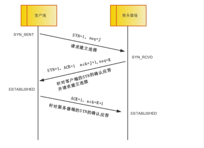①主机A通过向主机B 发送一个含有同步序列号的标志位的数据段给主机B,向主机B 请求建立连接,通过这个数据段,主机A告诉主机B 两件事:我想要和你通信;你可以用哪个序列号作为起始数据段来回应我。