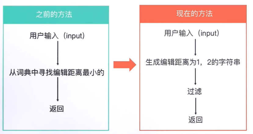 可以遍历一遍词典库里面的词去对比,但词典库内容可能很多,会增大时间复杂度,因此我们选用第二种方式:针对一个错误的输入,我们生成所有的编辑距离为1,2的字符串,之后进行过滤。