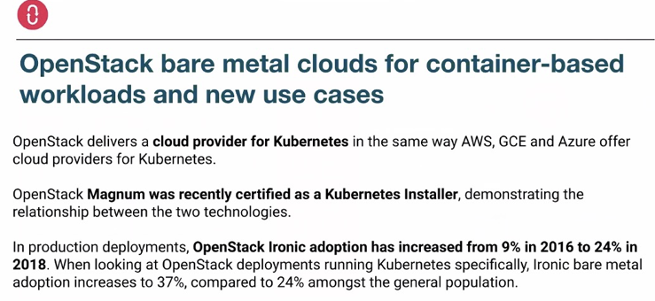 OpenStack Infrastructure Summit丹佛峰会已经是第19次峰会了,并且一直在专注OpenStack社区的建设,在boarding meeting上CEO Jonathan更是提到要加强OpenStack的品牌建设。从OpenStack更名为Infrastructure,曾经也引发了一系列“OpenStack is Dead”的噪声,但其实OpenStack在管理裸机和容器化部署上,正在迅速增长,这也证伪了“OpenStack is dead”的言论。基金会表示,在生产环境中,Ironic裸机部署从2016年的9%增长到了2018年的24%。