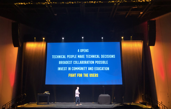 基金会特别提到了4个Open,从技术问题应该由技术人员来决定,尽可能广泛的合作、在社区建设和培训方面的投入,从始至终为客户考虑着几个方面进行阐述,并将峰会的这些理念传输给每一个OpenStacker。