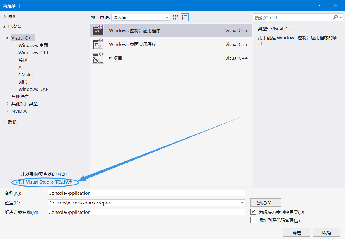已经安装了VS2017但没有安装.net的,可以 文件-新建项目 找到下图中的链接补上.net(安装完后VS会提示你重启,注意你的电脑是否还有尚未保存的工作)
