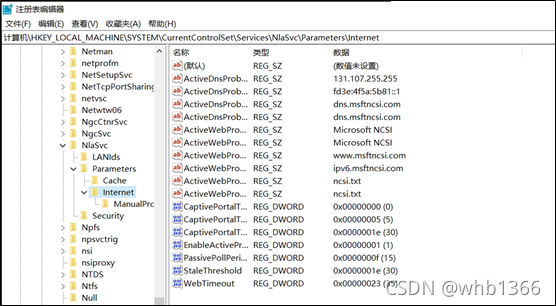 解决方法:修改部分数据如下图所示(将connecttest修改为ncsi)