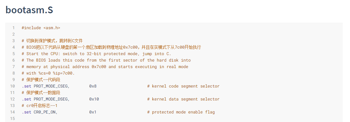 本文主要是介绍uCore核心代码:bootasm.S,希望对大家解决编程问题提供一定的参考价值,需要的开发者们随着小编来一起学习吧!