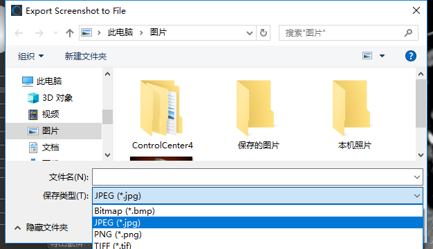 截屏完成后点击导出,设置图像名称和格式后保存截屏。