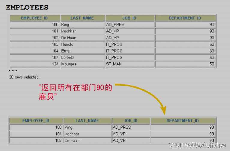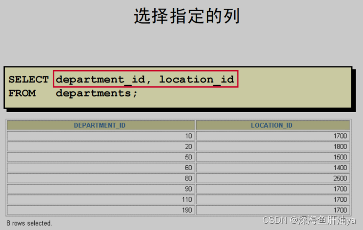 注意:where后面跟的条件返回的只是真或假,例如 select department_name,location_id from