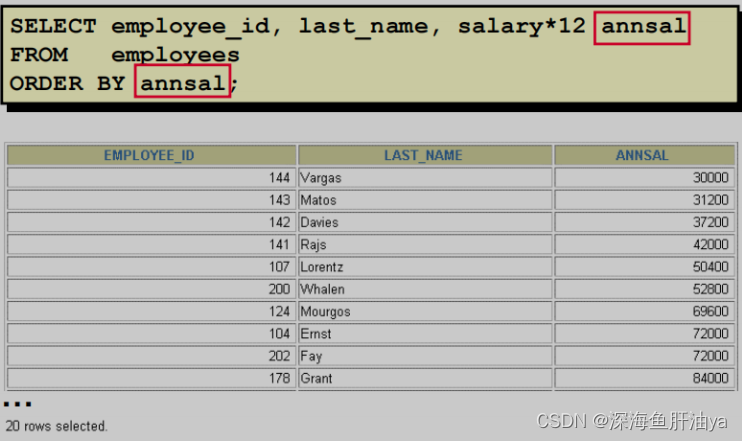 示例:查询雇员的年薪,并显示他们的雇员 ID ,名字。