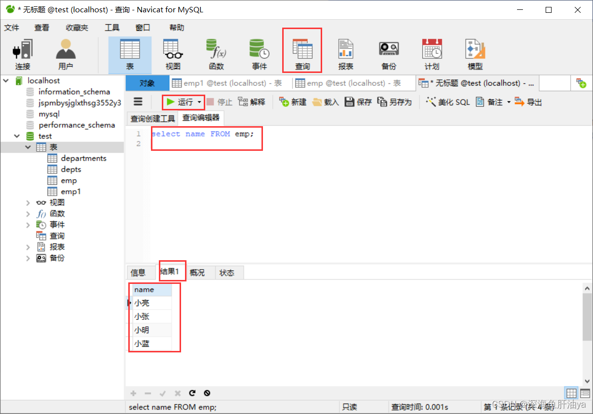 将 data.sql文件 (戳链接)通过 Navicat 导入到 MySQL 中 itbz 数据库中。该文件包含了课程中所使用的案例表。