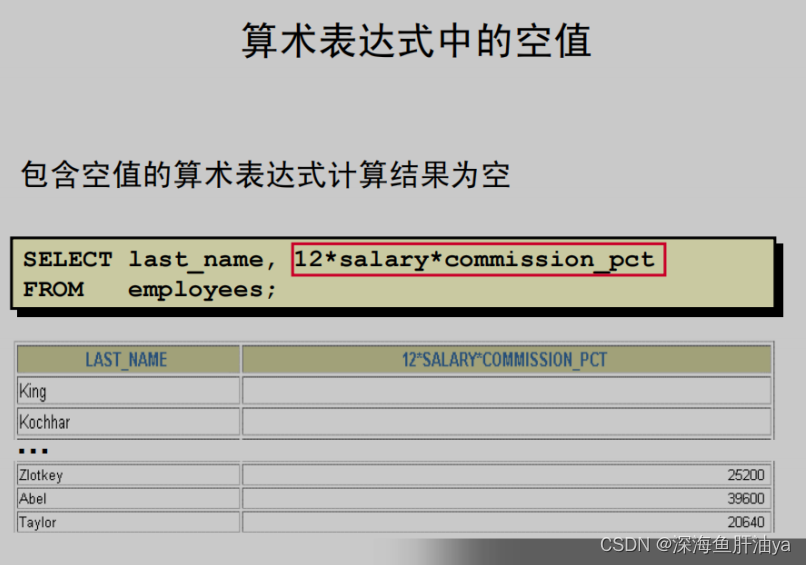 如果算数表达式中的某一项中是null,那么算术表达式结果就是null。