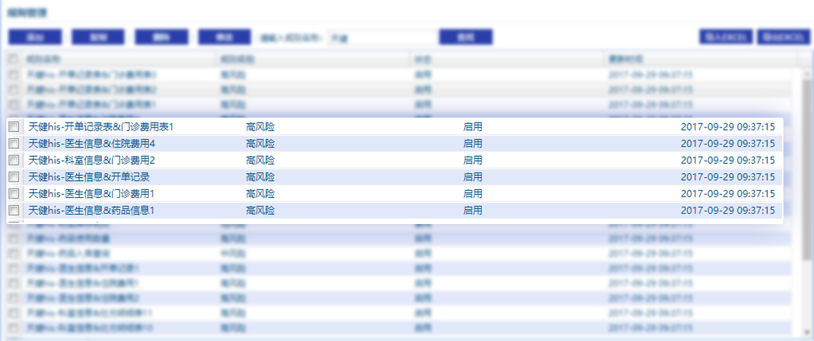 拥有丰富的规则库,能够适用常见的HIS,内置HIS规则库中有1000+的规则,方便纪委操作调用。