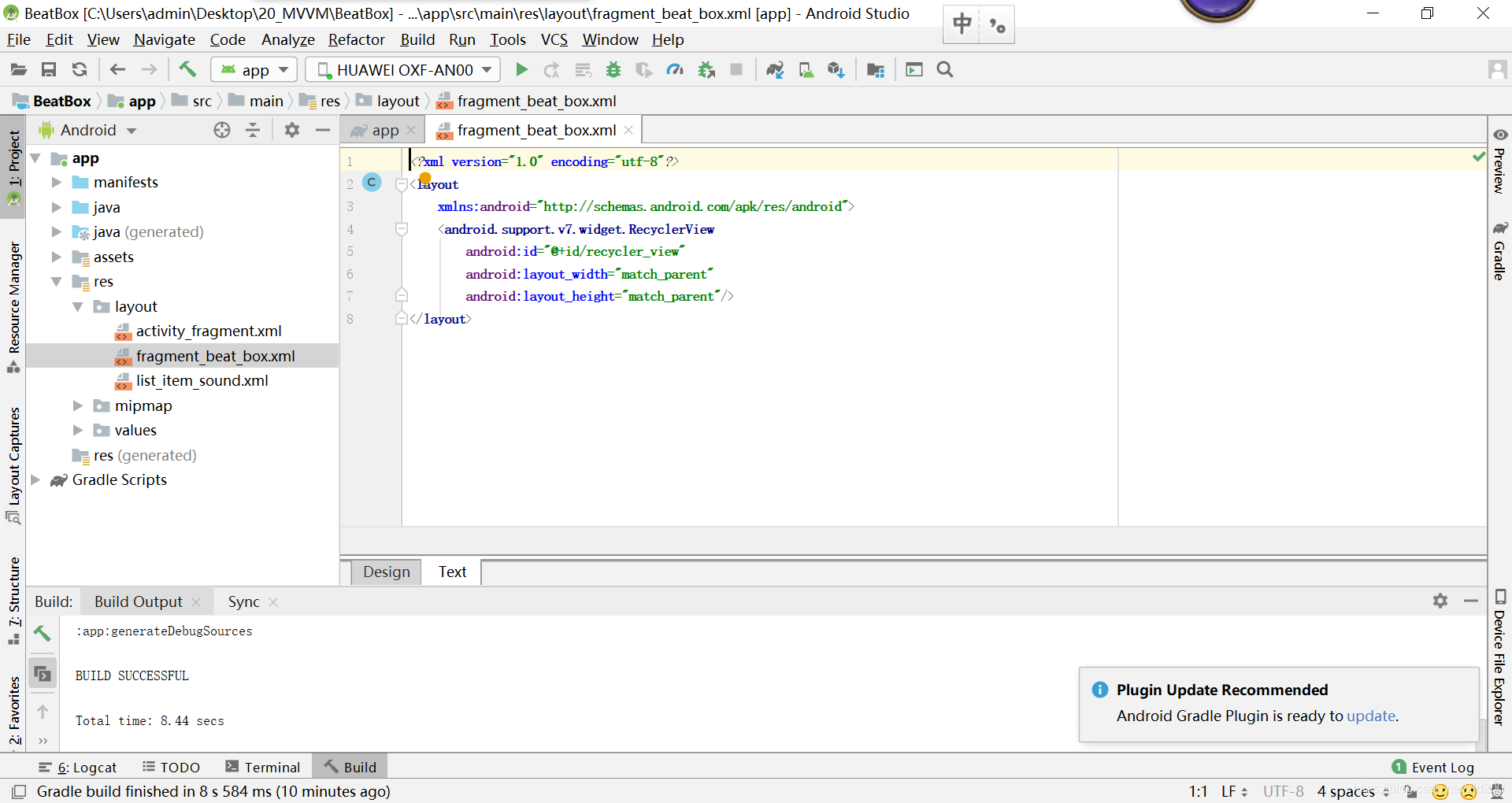 - 4 把一般布局改造为数据绑定布局(res/layout/fragment_beat_box.xml)