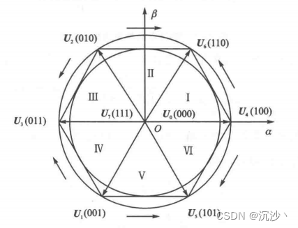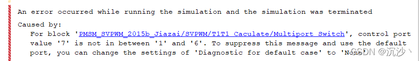 翻译过来的意思就是控制输入的端口值7不在1和6之间, 为了抑制这个错误,你可以将设置窗口中的报错选项改成None。但是虽然是可以改设置窗口让他不报错,但是改了之后系统波形会出现跑飞的现象,这是指标不治本的,还是要从源头上对问题进行解决。电压空间矢量分布图如下图所示,在整个360°周期内存在6个扇区。